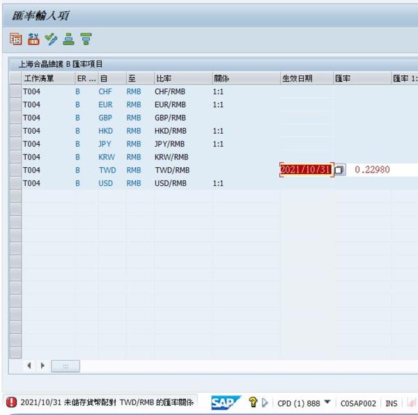 SAP 匯率維護.