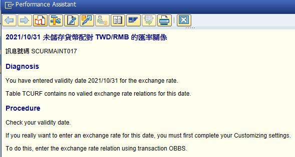 SAP_tcurmnt_匯率維護_貨幣對應錯誤訊息