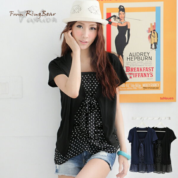 出自:線上購物分享 - 假兩件--甜美公主風假兩件點點雪紡長上衣(黑.藍M-2L)-D184眼圈熊中大尺碼