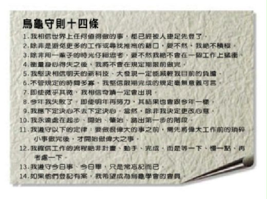 - 10樓. 烏拉瑰本尊在此2012/10/25 16:17沒出息的人的守則