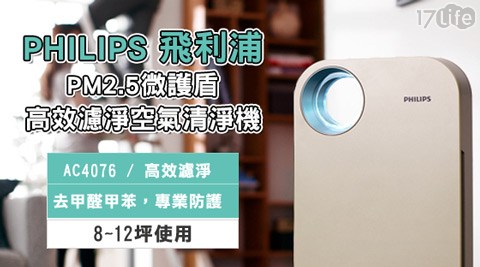 到賣場購買PHILIPS 飛利浦-PM2.5微護盾高效濾淨空氣清淨機(AC-4076)1台",而且可以在17life選購PHILIPS 飛利浦-PM2.5微護盾高效濾淨空氣清淨機(AC-4076)1台"後